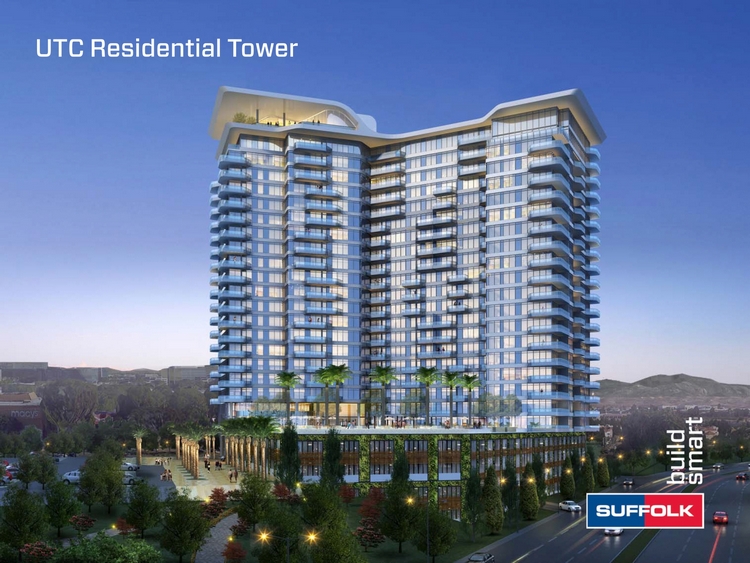 SAN DIEGO, Calif. – To celebrate the topping out—or having just poured the top floor of the 240-foot-tall residential tower now under construction at Westfield UTC in San Diego, California—the project’s general contractor, Suffolk, will host a worksite ceremony on Nov. 2 to mark the project milestone.