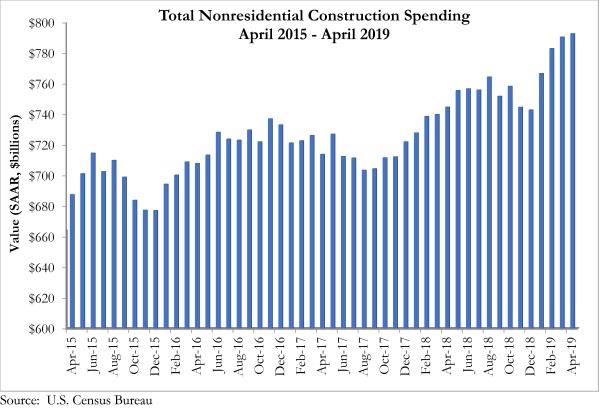 “Given current levels of backlog, which expanded to 9.5 months in March 2019, nonresidential construction spending should remain elevated,” said Basu. “That said, risks of recession in 2020 are rapidly rising, which has the potential to reduce construction activity in 2021 and/or 2022.”
