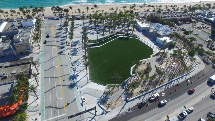 A central component of the project is the Las Olas Oceanside Park, featuring architecturally designed landscaping that provides additional shading with streetscape improvements along the boulevard and a refreshing splash pad for children to play. Instead of all grass, portions of the park incorporate coquina shells and tall patches of sea grasses that bring beach elements into the public space. Additionally, the city of Fort Lauderdale’s Seabreeze Tram will provide free transportation between the new parking garage and the oceanfront park and plaza to ease access for beachgoers.