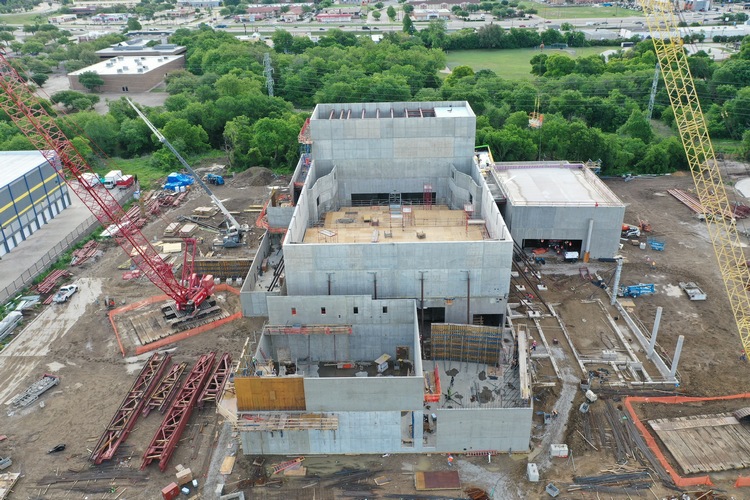 An important milestone in the construction of the Plano ISD Fine Arts Center, located in Plano, Texas, has recently been reached with the completion of the project’s architectural concrete walls. The tall and carefully designed walls are focal points that the rest of the center’s design was largely based upon. McCarthy Building Companies, the general contractor, is self-performing the concrete work in this facility that features a 1,500-seat multi-purpose performance hall with an upper-level balcony and lower-level orchestra pit, a 250-seat studio black box theater, a rehearsal studio for music and dance and a visual arts gallery.