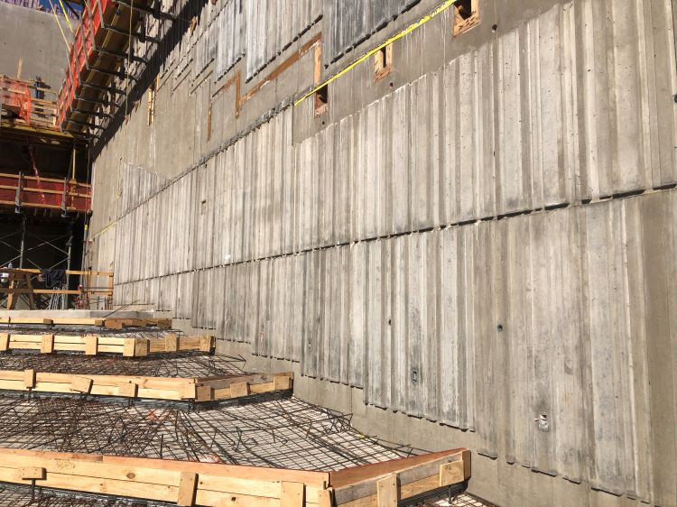In order to build the concrete walls in the main theater and black box studio, McCarthy used a custom-patterned, rib-like form-facing linerboard that allowed the finished surface of the walls to be shaped in a manner that would properly cause the acoustics to perfectly resonate throughout the space during performances. As the concrete theater walls are exposed, all the lighting, speakers and other infrastructure are installed within the concrete. This required upfront coordination between the contractor and design team. McCarthy built four separate mock-ups to ensure all potential conditions could be tested and verified.