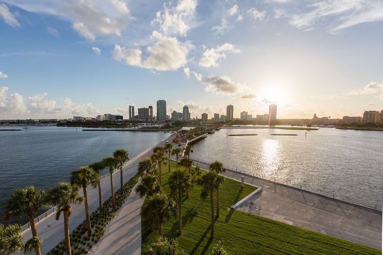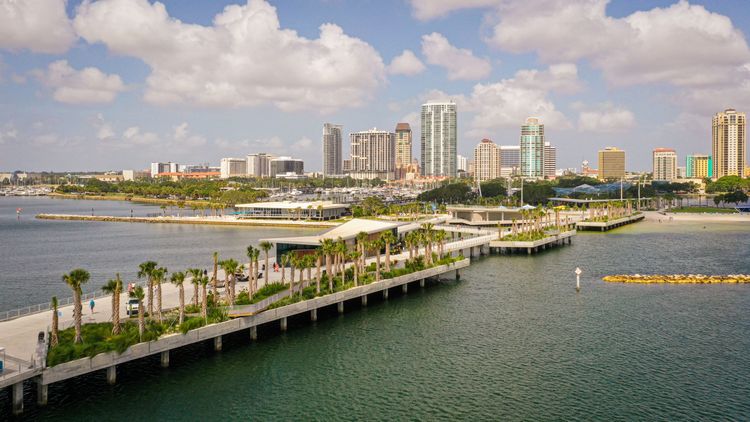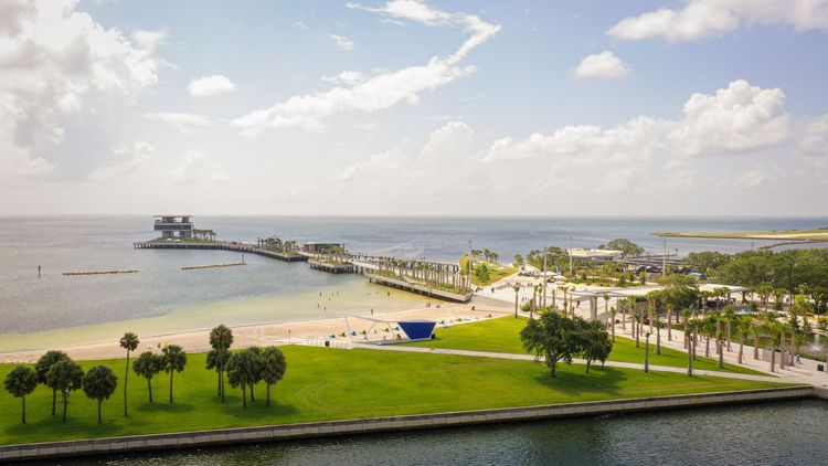 Renovations of the historic St. Petersburg municipal pier and pier approach, situated in the heart of downtown St. Petersburg, Florida, has been completed. With breathtaking views of the waterfront, The Pier District includes a variety of dining and shopping options, interactive experiences, a spacious family park with a custom-built, million-dollar playground, fishing pier, art installations, beach area and more.
