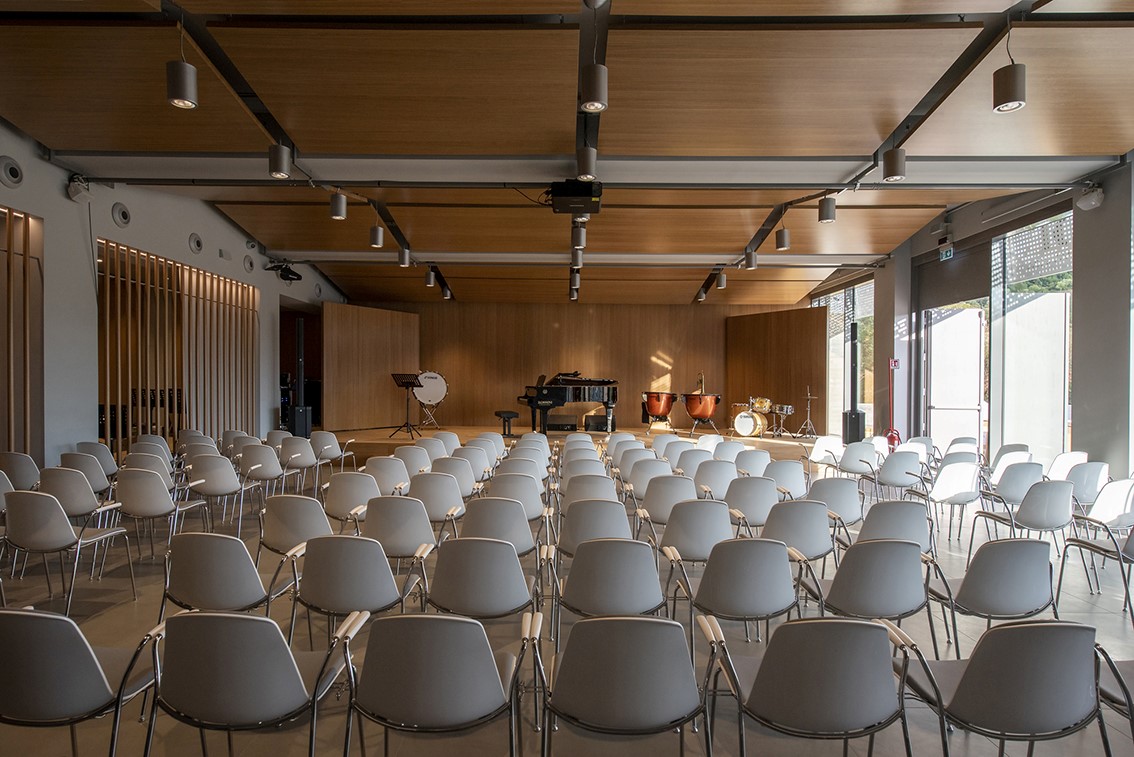 Open year-round and ready to host conferences, events, study activities and workshops at the service of the community, the new architecture presents itself as an educational and innovative forge dedicated to music, capable of giving Camerino a role of reference in the cultural panorama of the Marche region and beyond.