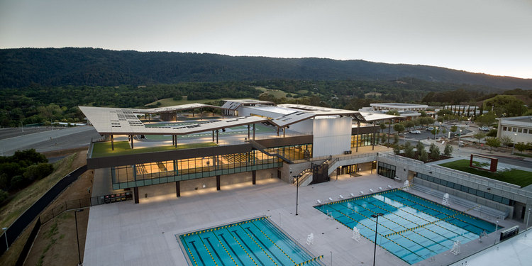 A focal point on Cañada’s campus, the new Kinesiology and Wellness building replaces the school’s outdated concrete gymnasium erected in 1967, never fully completed and lacked critical features, most notably the initially planned pool and an HVAC system. It is set amidst rolling hills in a Wildland Urban Interface, two distinct building challenges that were alleviated by the project team’s collaborative relationship and ability to deliver innovative solutions. The result is a new facility targeting LEED Gold certification with many unique and distinguished features, including more than 60 different exterior skin conditions, an array of workout, gymnasium and support spaces, two competition-sized pools, an activated roof with track, pickle ball courts and yoga studio, a hall of fame wall that pays homage to Cañada’s elite and inspiring student athletes and an expanded parking lot with 400 additional spaces.