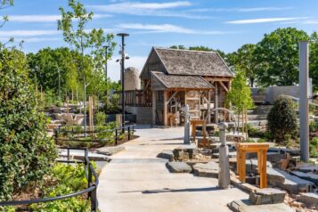 Gipson Play Plaza was designed with universal accessibility as a core principle, featuring ADA-accessible routes connecting all major play areas, 10 restroom cabanas with changing facilities and pathways designed for users of all abilities. The Gipson Play Plaza at Dix Park is now open to the greater Raleigh community. For more information, visit dixpark.org/gipsonplayplaza.