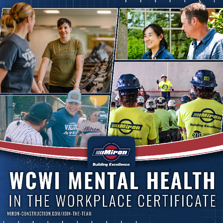 Mircon Construction recently received the Mental Health in the Workplace certificate from the Wellness Council of Wisconsin.The certificate is designed to help Wisconsin-based organizations build and sustain a mentally healthy work environment by focusing on five essential pillars: awareness and education, leadership engagement, policies and procedures, employee support and inclusion and measurement and growth.