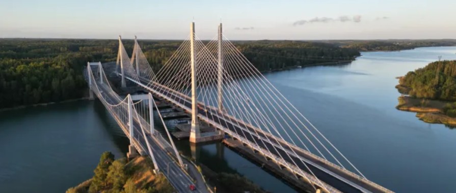 The Kirjalansalmi Bridge, Finland’s longest road bridge by clear span, has officially opened, marking a major milestone in the country’s transport infrastructure. Commissioned by an alliance partnership between contractor Kreate and the Finnish transport infrastructure agency Väylävirasto, the new bridge replaces the existing 1963 suspension bridge that had reached the end of its lifespan due to fatigue damage. Spanning 675 meters across the Kirjalansalmi Strait in the Archipelago Sea, the new steel composite cable-stayed bridge — with a main span of 265 meters — provides the only road connection to Pargas and the Turku archipelago, home to over 50,000 islands. … Read more